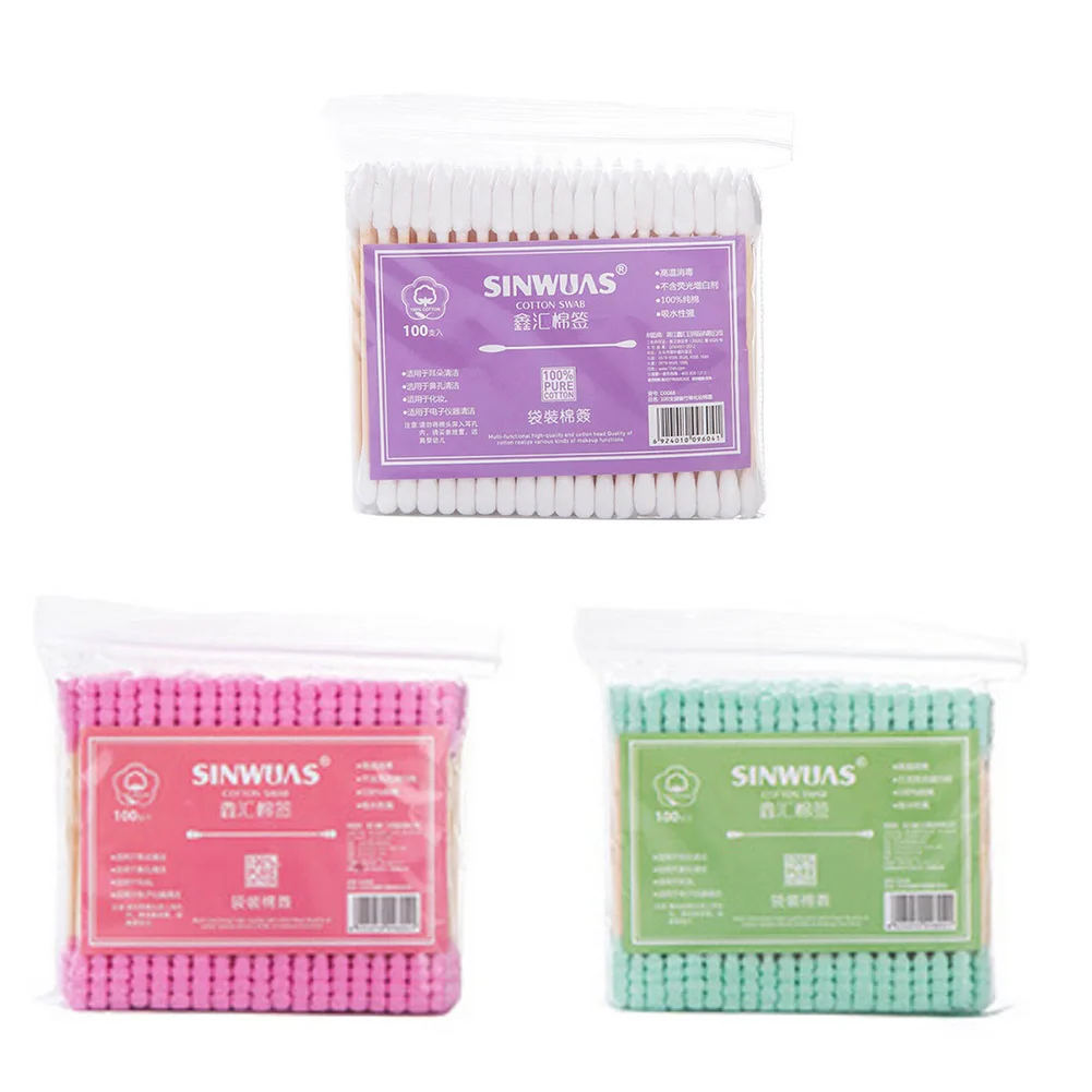 Cashback 100pcs/ Pack Double Head Cotton Swab Women Makeup Cotton Buds Tip For Medical Wood Sticks Nose Ears